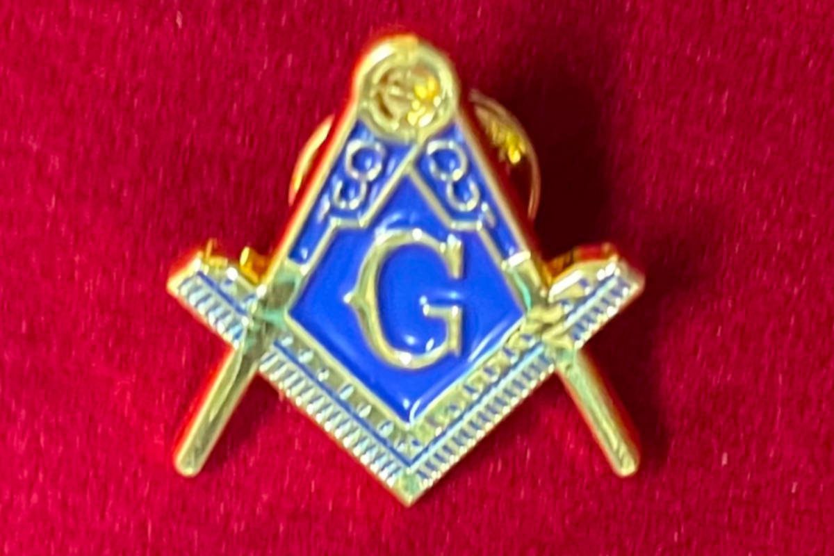 Pins Maçonnique – Equerre-Compas bleu et doré et G doré sur fond bleu – en alliage doré non précieux