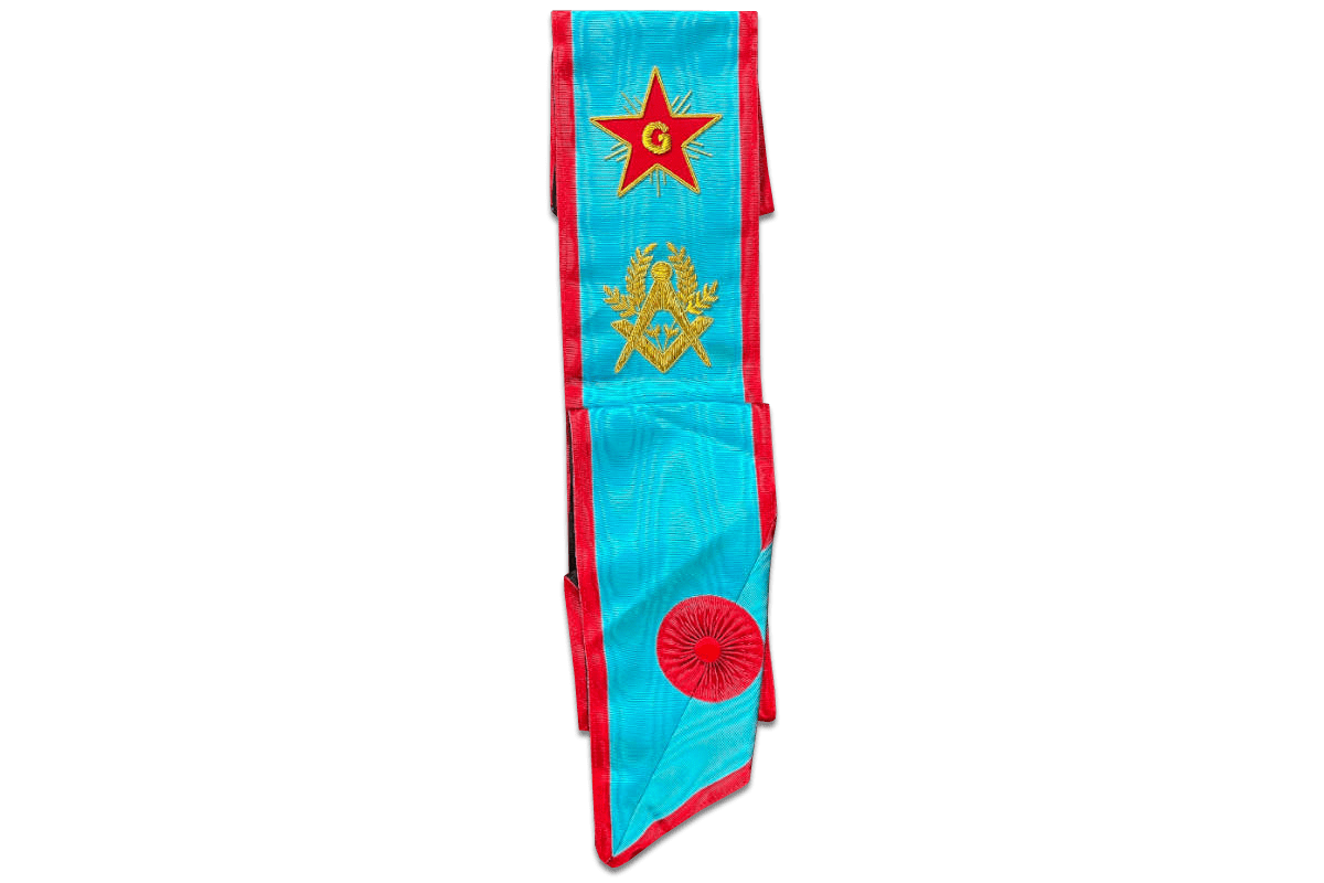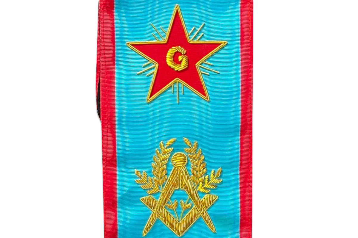 Cordon de Maître Maçon REAA – Etoile – Equerre et Compas, Branches d’Acacia – G – Rosasse Rouge