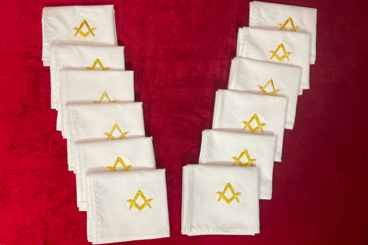 Lot de 24 et plus Serviettes Maçonniques de table pour Banquet d’Ordre à personnaliser avec Logo ou blason brodés main (prix sur demande, contactez-nous))