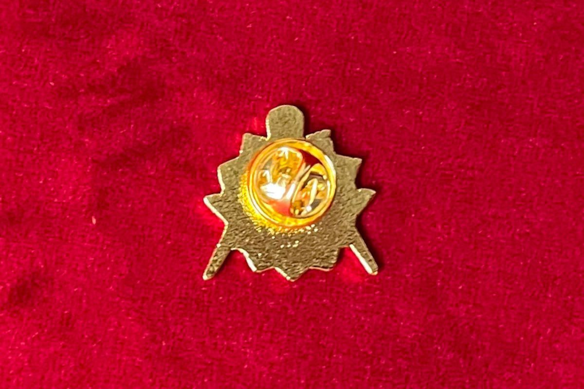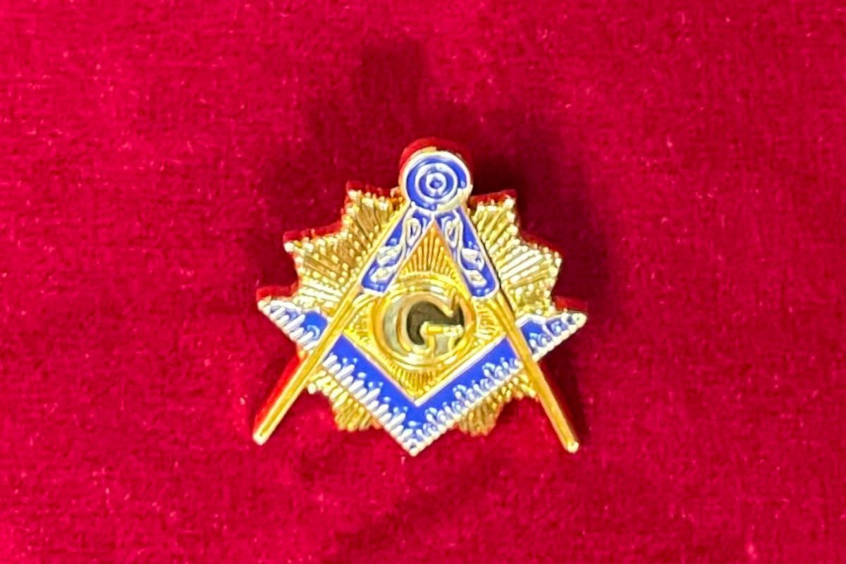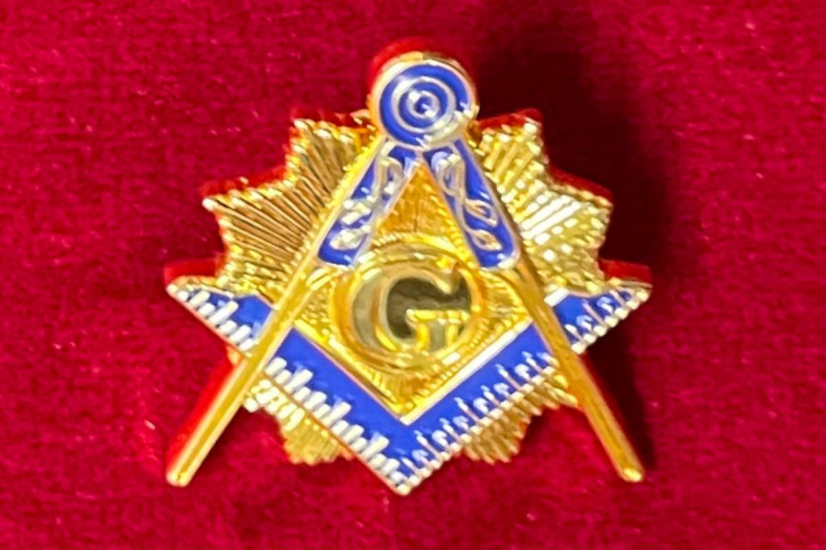 Pins Maçonnique – Equerre-Compas bleu et doré et G étincelant doré – en alliage doré non précieux