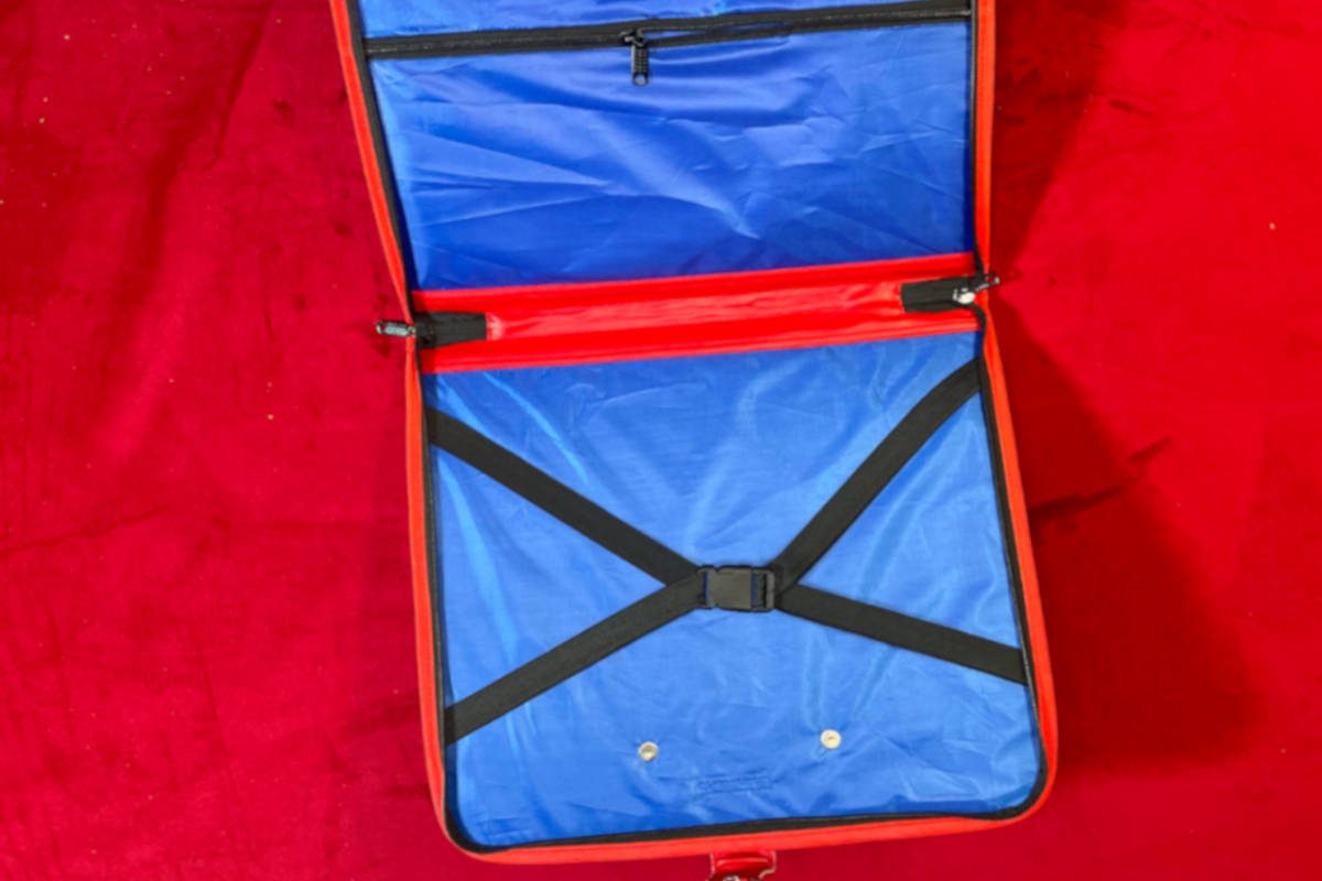 B & J, votre boutique maçonnique, vous propose ce Porte-Décors souple Noir – fermeture zip plus boucle – manches pliables