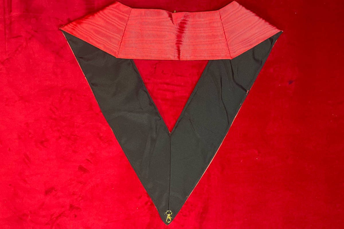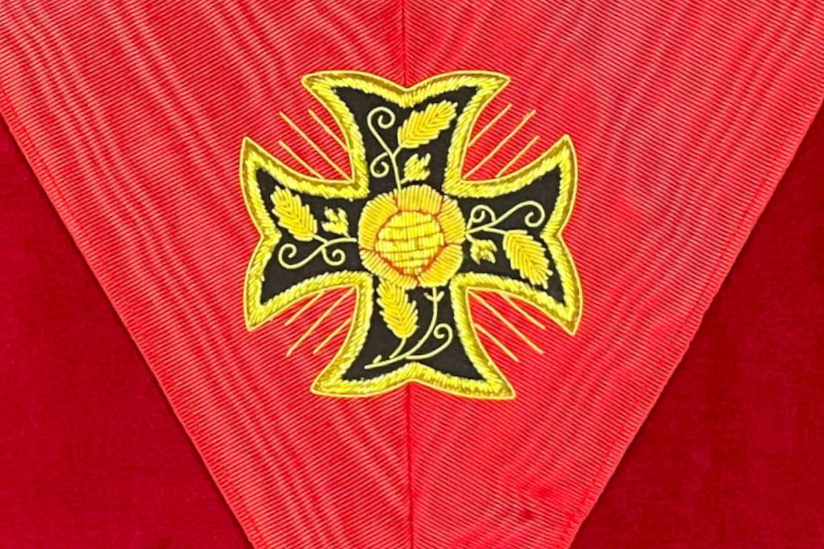 Sautoir de Chevalier Rose Croix, 18e degré du REAA (Rite Ecossais Ancien et Accepté), avec comme symbole maçonnique une Croix étincelante pattée de gueules avec une rose entourée d’acacia , brodé main – Taille 53*2*11