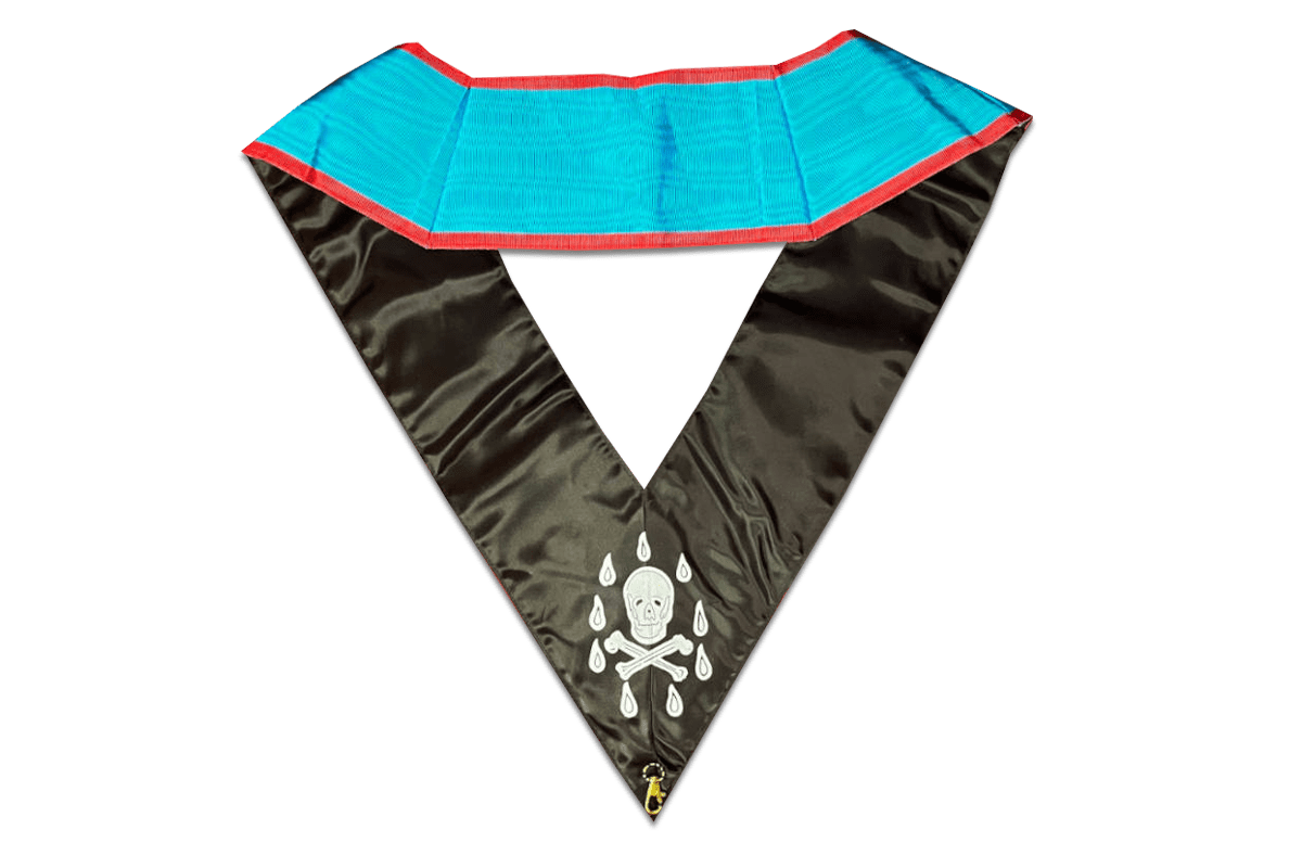 Sautoir d’Officier Maître des Cérémonies du REAA (Rite Ecossais Ancien et Accepté), avec comme symbole maçonnique la Canne, avec crochet doré porte-bijoux – Taille 53*2*11 cm (106 cm).