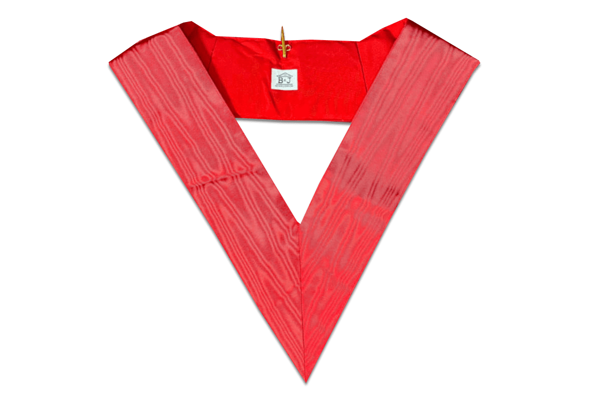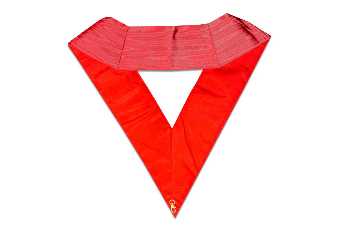 Sautoir de Prince Tabernacle, 24e degré du REAA (Rite Ecossais Ancien et Accepté), de couleur rouge, brodé main, avec crochet doré – Taille 53*2*11 cm.