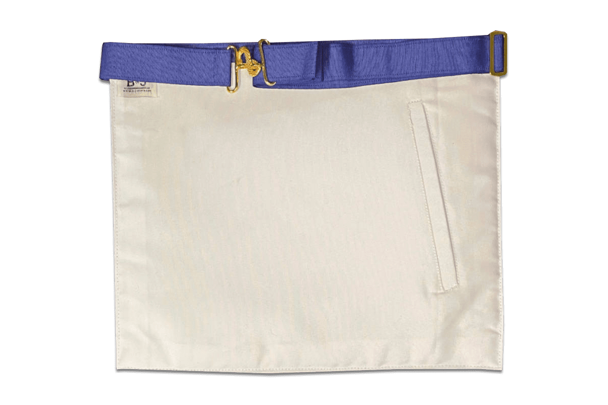 Tablier d’Apprenti – Compagnon du RMM (Rite de Memphis et Misraïm), de couleur blanche avec bordure bleu clair et 1 étoile à 5 pointes sur la bavette.