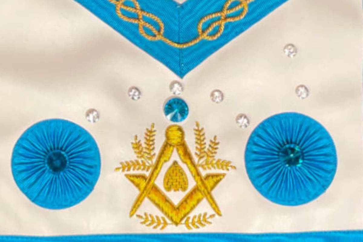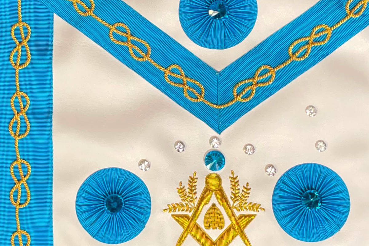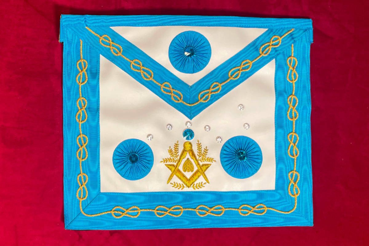 Tablier de Maître Maçon – RF – Série Voute Céleste – Façon diamant étincelant – 3 Rosasses