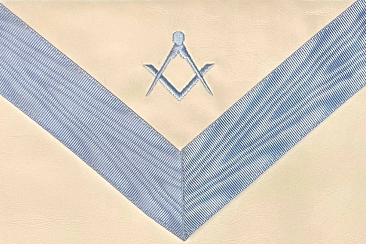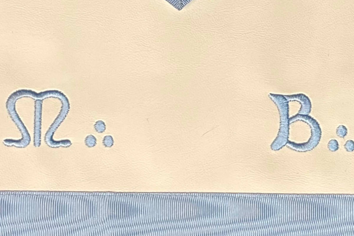 Tablier de Maître Maçon RFMR (Rite français Moderne Retablis) – avec M:. B:. – Equerre Compas – Brodé – Dos Noir Deuil