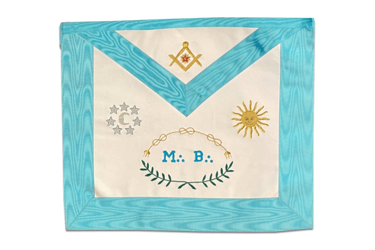 Tablier de Maître RFT (Rite Français traditionnel), RER (Rite Ecossais Rectifié) – M:.B:., Soleil, Lune, Etoiles et Lacs