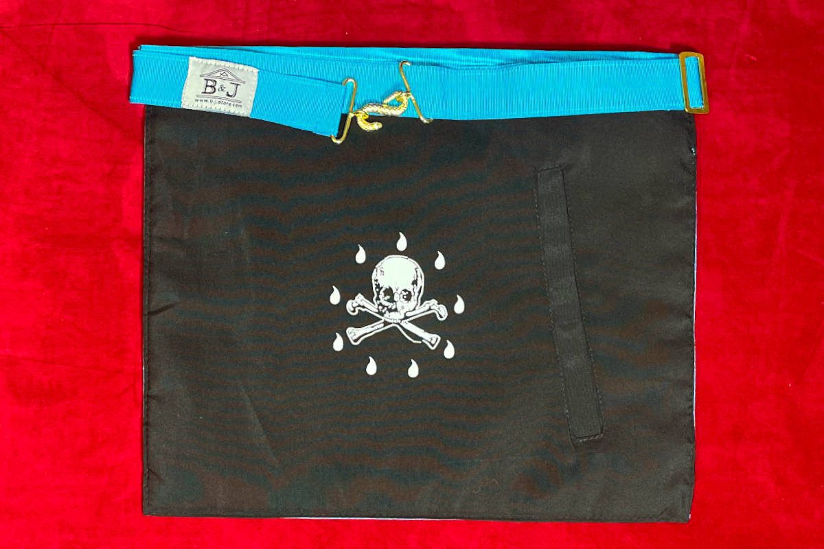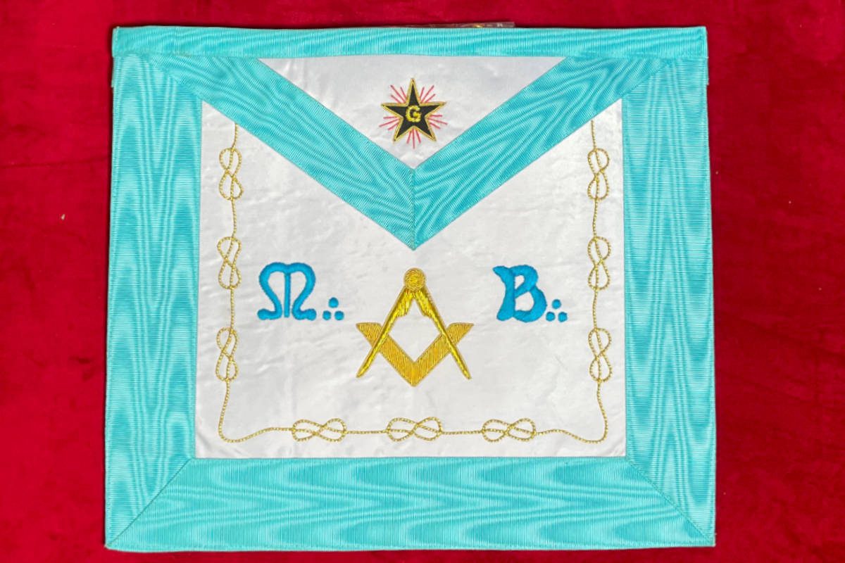 Tablier de Maître du RF – RER, avec comme symboles maçonniques :
