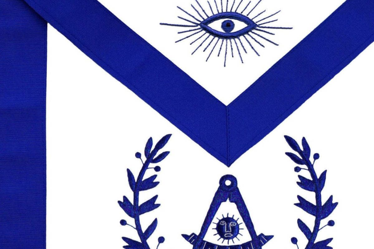 Tablier Maçonnique de Maître RY – Bleu Royal – Branches d’Acacia – Compas & Equerre – soleil – Œil Flamboyant