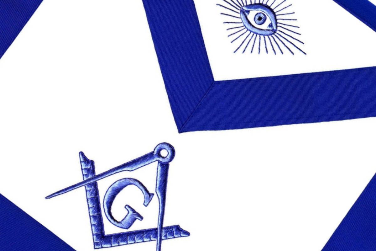 Tablier de Maître du RY (Rite d’York), de couleur Bleu turquoise, avec comme symboles maçonniques :